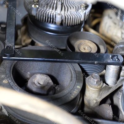 This tool is used to remove and install belts on serpentine belt systems using spring-loaded idler pulleys.