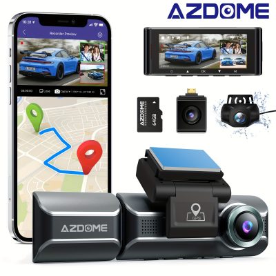 AZDOME M550 Dash Cam 3 Channel 4K 1080P Dual Way Built in WiFi GPS With 64GB Memory Card Parking Surveillance Loop Recording Ultra HD Car Camera