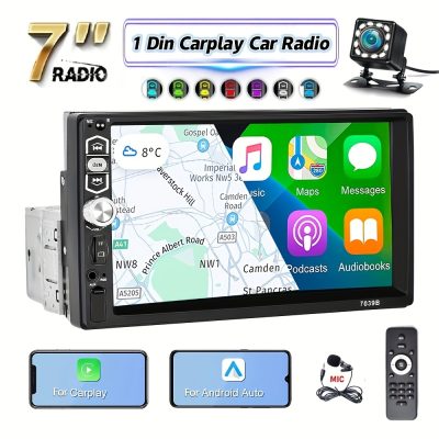 1Din 7Inch Car MP5 Player Carplay Android Auto HD Touch Screen BT Car Stereo Radio Support Mirror Link FM AUX Function 12LED Camera