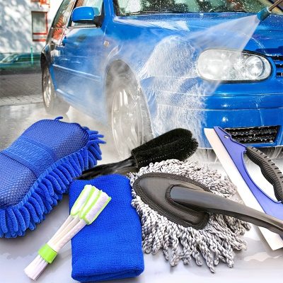 7Pcs Car Cleaning Set Car Wash Set Microfibre Cloths Dust Brush Rim Brush Water Squeegee For Effective Cleaning Professional Car Care Kit