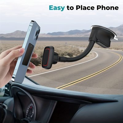 Magnetic Phone Holder For Car Dashboard Windshield Phone Holder Mount With Flexible Arm Built in Strong Magnets Suction Cup Phone Holder For Car