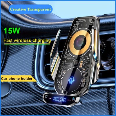 New Creative Transparent Line Panel Car Mobile Phone Holder Support 15W Wireless Fast Charging Holder In Car Cell Phone Holder