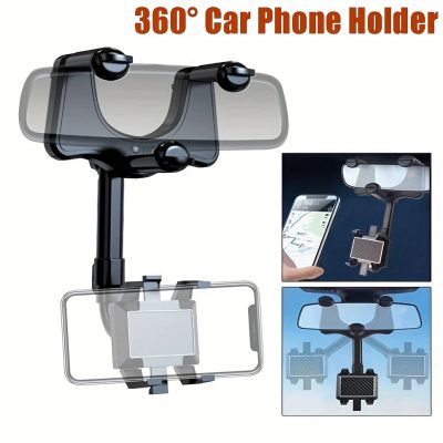 360 Rearview Mirror Car Phone Holder Adjustable Rotating Car Mount Flexible Stretch Length Adjust Angles Mobile Phone Holder Stand For Car…