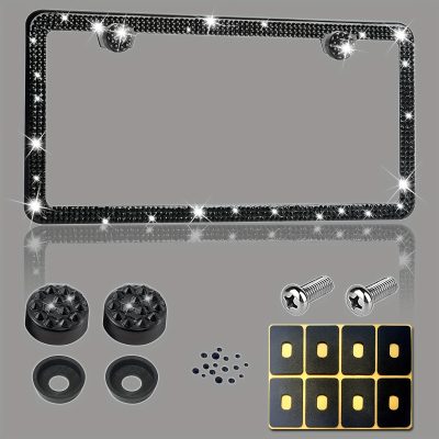 1pc Black Bling License Plate Frame Shiny Thin Edge Car Tag Holder Metal Cool Sparkly Frame With Bolts Screws Caps Car Accessories For Women