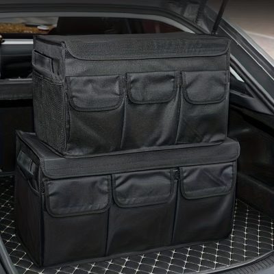 1pc Car Trunk Cargo Storage Bag Foldable Black Car Storage Box With Lid High Capacity Multi Compartment Multi Role Organizing Trunk Car Storage Bag