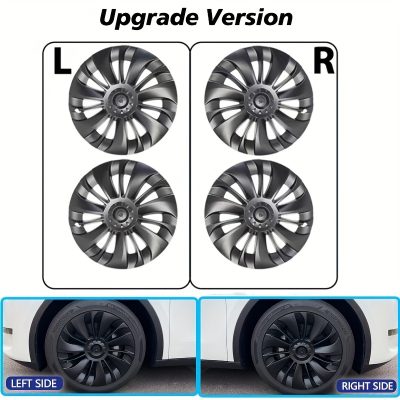 4pcs Same Hub Cap Performance Replacement Wheel Cap 19 Inch Automobile Hubcap Full Rim Cover For Tesla Model Y 2020 2021 2022 2023 Asymmetric Style