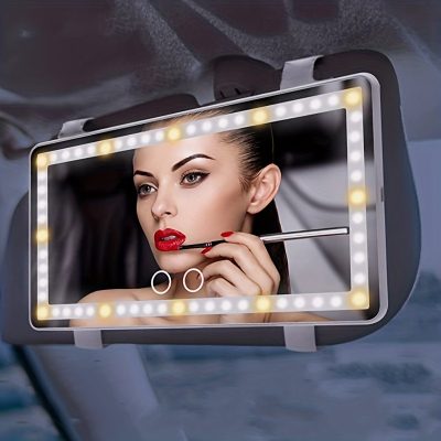 1pc Car Makeup Mirror Sun Visor Mirror With Led Light Makeup Fill Light Car Makeup Mirror Rechargeable Beauty Mirror Car Accessories
