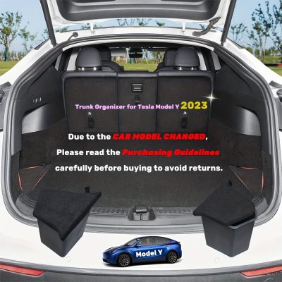 Car Rear Trunk Organizer Storage Boxes With Lids For Tesla Model Y 3 Waterproof Odorless Side Protector Packets Bins Interior Accessories 5 Seater