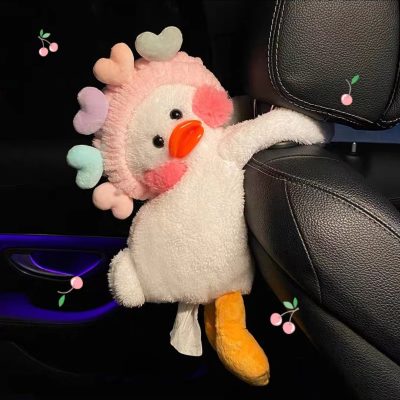 Car Tissue Box Cartoon Plush Seat Back Armrest Box Drawer Box Hanging For Car Decoration Accessories