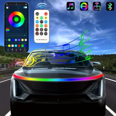FCPVHOY Led Lights Car Hood Light Strip APP Control 12V LED Daytime Running Lights RGBIC Flexible Headlights LED Strips For Cars SUVs Trucks