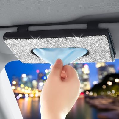 Glitter Sunscreen Tissue Box Crystal Shiny Tissue Bag PU Leather Back Seat Tissue Bag