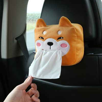 Plush Shiba Inu Dog Shape Cute Cartoon Tissue Box Tissue Holder Tissue Container For Car Car Interior Accessories