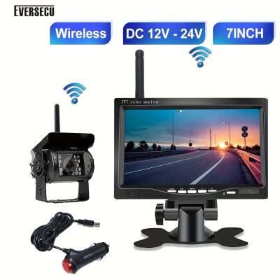 Wireless Vehicle Backup Cameras Plus 7 Monitor Parking Assistance System For RV SUV Van Pickup Truck Trailer Rear Side Front View Switchable