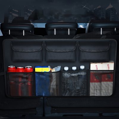 1pc Car Accessories High Capacity Foldable Oxford Trunk Hanging Organizer Storage Bag Net Backseat Hanging Bag Hatchback Storage Automotive Supplies