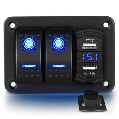 2 Gang Rocker Switch Panel With 4 8 Amp Dual USB Charger Voltmeter Waterproof 12V 24V DC Rocker Switch With Night Glow Stickers For Cars Trucks RVs