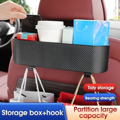 2 in 1 Car Seat Storage Box Hook Multi functional Gap Storage Box Organizer Car Seat Back Storage Box Creative Automotive Storage Box