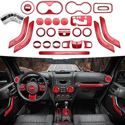 28pcs Interior Decoration Trim Kit Compatible With Wrangler 2011 2018 JK JKU Inner Door Handle Cup Holder Steering Wheel Center Console Trim