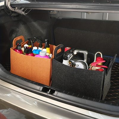 Car Felt Folding Storage Basket Car Trunk Hand Storage Box Household Snack Toys Sundries Thickened Hand Storage Bag Dirty Clothes Storage Basket
