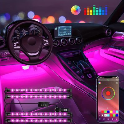 4Pcs Car LED Lights 48LED Interior Lights Smart App Control Lights Bars Multicolor Music Car Strip Light Under Dash Lighting