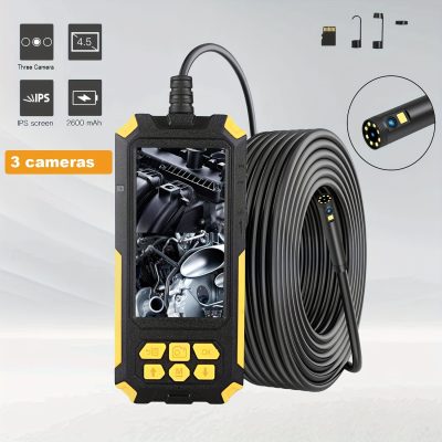 Three Lens Borescope Endoscope Sewer Inspection Camera With 4 5” IPS Screen Waterproof Snake Cable 10 LED Lights Scope Camera For Car And Pipeline