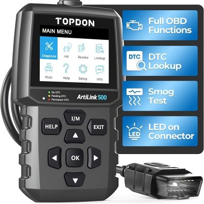 TOPDON AL500 OBD2 Scanner Car Check Engine Light CAN Diagnostic Tool Turn Off MIL O2 Sensor Test Mode 6 EVAP Test DTC Lookup LED Light
