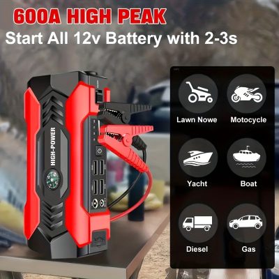 12V 1000A Car Jump Starter Portable Power Bank Starting Device Strong Start 18000MAH Diesel Petrol Gasoline Emergency Battery Charger With Compass