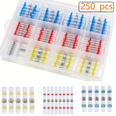 250pcs box Solder Seal Wire Connector Kit Heat Shrink Butt Crimp Terminals Waterproof And Insulated Electrical Wire Terminals Butt Terminals