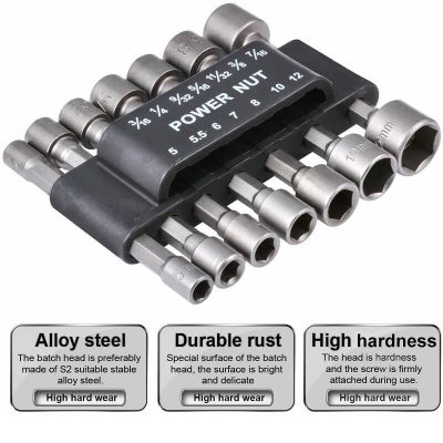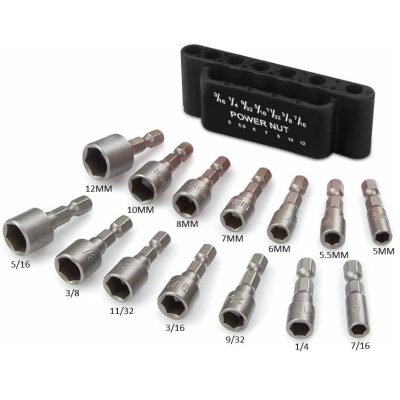 14pcs Power Nut Driver Drill Bit Set 5-12mm Hexagonal Shank Hex Nut Socket 1/4″ Screw Metric Driver Tool Set Adapter Drill Bit