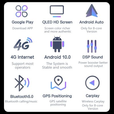 Support Apple wireless Carplay and Android Auto, mobile APP, music, maps, etc. will be displayed on the Android player (only supported by the eight-core version of the radio)