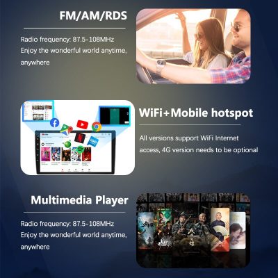 Support FM radio, you can listen to the channels you are interested in and enjoy driving time. RF: 87.5~108MHz
