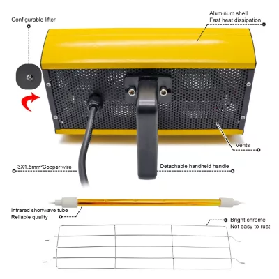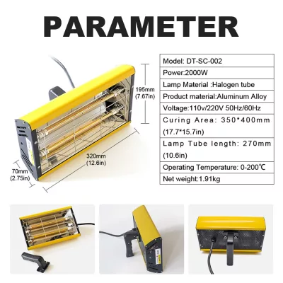 Car paint lamp is suitable for spot repairs, engine drying, car putty, removal of adhesive strips, drying filler, drying primer or just preheating before spraying.
