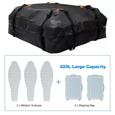 Large Capacity: This cargo bag will give you 425L space to store your luggage. You don’t need to worry about no space to place your items anymore!