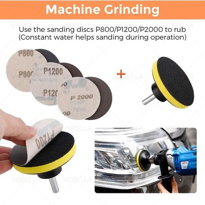 45/30/15PCS Car Lights Kit Polishing Restoration Car Headlight Repair Set Sandpaper Sanding Discs Pad M10 Drill Adapter No Drill