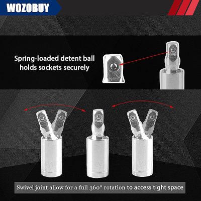 【Pragmatic& Safe】: Flexible extension bar, sliding bar, extension bar and universal joint are for reaching narrow space. Spring-loaded detent ball on universal joint holds sockets securely in place, knurled grip on bar for turning loosened fasteners by hand. Spinner handle and hex wrenches are excellent auxiliary tools.