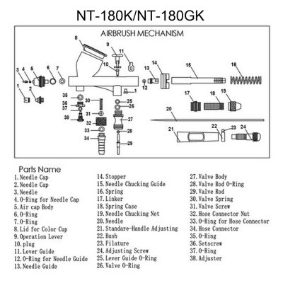 Suitable for Nasedal NT-180K NT-180GK airbrushes.