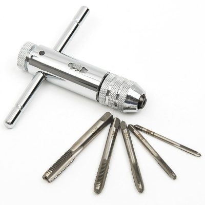 Be the first to review “Adjustable Silver T-Handle Ratchet Tap Holder Wrench with 5pcs M3-M8 3mm-8mm Machine Screw Thread Metric Plug T-shaped Tap” Cancel reply