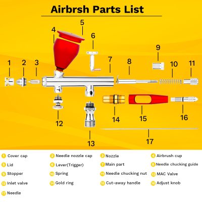 Airbrush Replacement Parts Accessories for Model NCT-SJ83 Dual-action Airbrush Backup Replacment Repair Parts