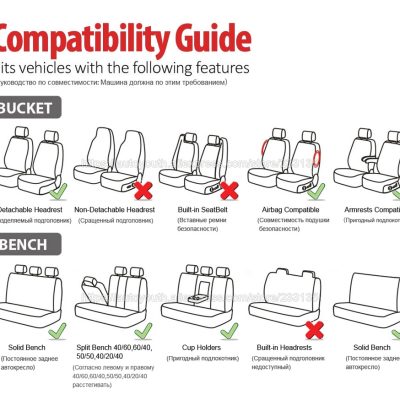 our seat covers Have a stretchability, Rear bench covers have three zippers on them to accommodate left and right 40/60 split, 40/20/40 split and 50/50 split. It also allows you to fold down the cup holder or armrest by unzipping one of the zippers on the backrest cover.help you easily expnd or shorten the cover to suit for your car seat model.