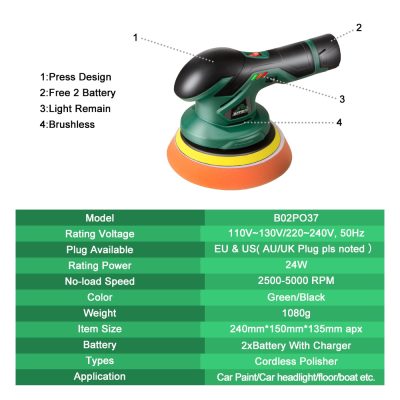 Be the first to review “BATOCA Cordless Car Polisher 12V Wireless DA Car Polishing Machine Brushless Dual Action Buffer Free 2pcs 2.0Ah Lithium Battery” Cancel reply