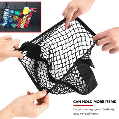 Multi-functional mesh bag, storage trunk, fixed and easy to roll items, fixed fire extinguisher.