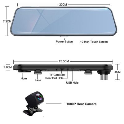 10″ Car Rearview Camera Stream Media DVR Mirror IPS Touch Screen FHD 1080P Dash Cam Registrar Video Recorder DVRs Dashcam | |