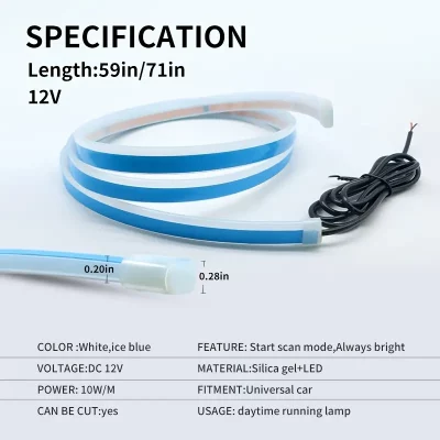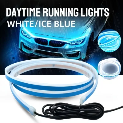 Car LED Start Scan Strip Lights 59 71 Inch Waterproof Flexible LED DRL Car Hood Dynamic Strip Light Bar White Ice Blue Daytime Running Lights 12V