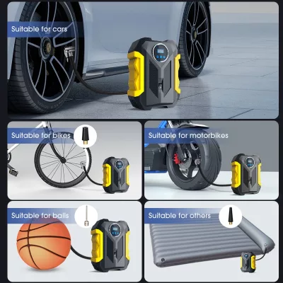 CARSUN Portable Automobile Air Compressor Digital Tire Inflation Pump LED Lamp Tire Compression Pump Compressor For Car Motorc30s Quick Replenishment Auto Charge and StopAll metal pressurized cylinderHow to use: