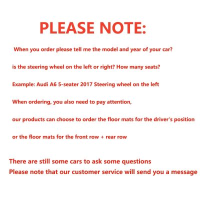 Dear friend. When you order, please leave a message and tell me your car brand / model / year/Left or Right driving. For example: BMW / X3 / 5seat / 2014. Left hand drive. We will be based on your model to make, thank you!