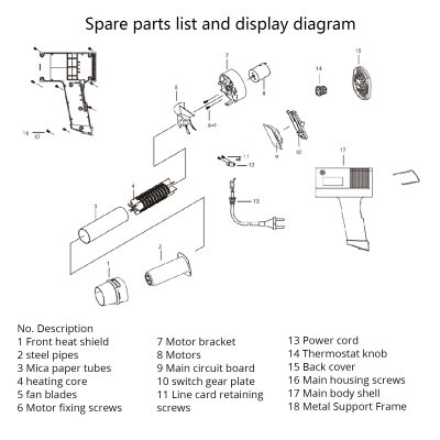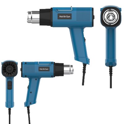 This hot air gun can be adjusted for low temperature work, suitable for manual work heating, such as soft pottery thermoforming, heat shrinkable tube shrinkage, plastic molding, paper product drying, etc.