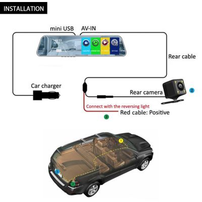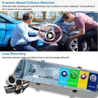 1920*1080 front dashboard camera and waterproof rear camera guarantee full HD video quality. You can also preview the road clearly whether view the screen from the front or from the side.
