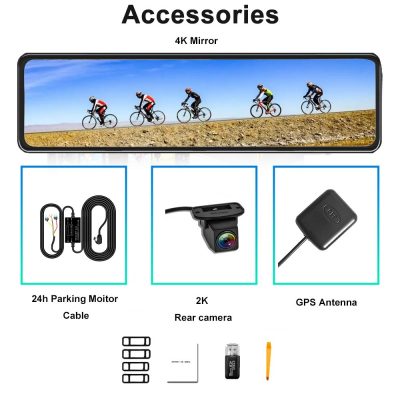 Application: 4K Camera, GPS Track, Over speed Remind, Streaming media rearview, Excellent night vision, Reversing video, 24h Parking monitor, Collision sensor, Front and rear dual video, Loop recording, Adjustabl view angle, Special mounting holder