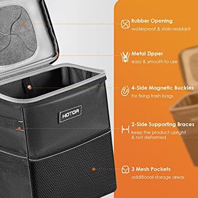 8 reviews for HOTOR Trash Can with Lid and Storage Pockets, 100% Leak-Proof Organizer, Waterproof Garbage Can, Multipurpose Trash Bin for Car – Black
