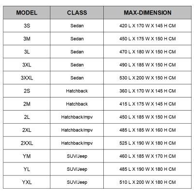 YM – SUV/JEEP 460L X 185W X 160H CM