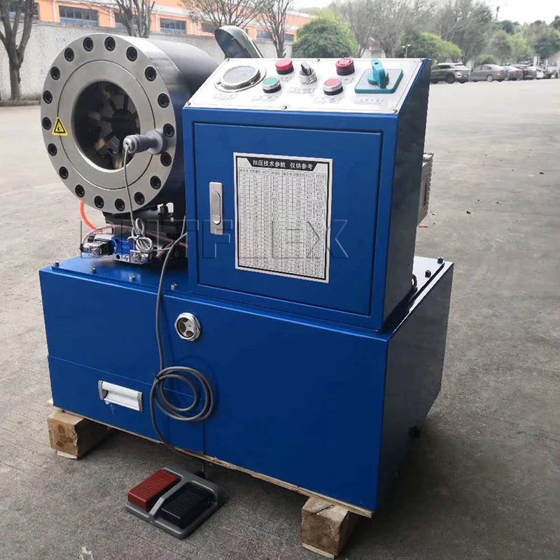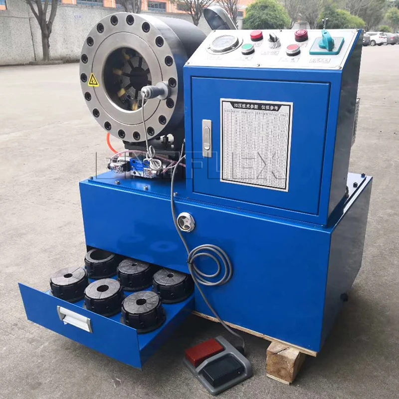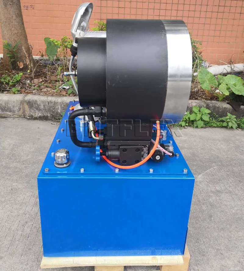 Hydraulic hose crimping machine has the features of nice appearance, lightweight, big force, easy operation and low noise. And it’s suitable for crimping all kinds of hydraulic hoses in hydraulic machinery. The max hose range is in inner diameter of 51mm.